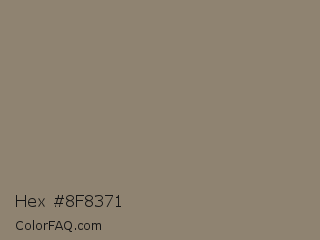 Hex #8f8371 Color is a normal orange color and the nearest color is Stonewall #928573. Hex code #8f8371 and RGB value is rgb(143,131,113). In RGB color space, this color is composed of 56% red, 51% green, 44% blue, In CMYK color space, this color is composed of 0% cyan, 8% magenta, 21% yellow , 44% black , In HSL color space, this color has a hue angle of 36° , 12% saturation and 50% lightness.