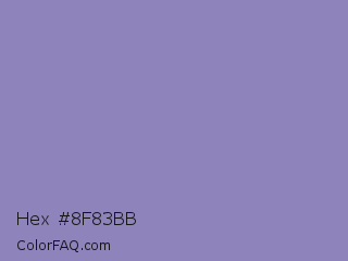 Hex #8f83bb Color is a light indigo color and the nearest color is Lavender Purple #967bb6. Hex code #8f83bb and RGB value is rgb(143,131,187). In RGB color space, this color is composed of 56% red, 51% green, 73% blue, In CMYK color space, this color is composed of 24% cyan, 30% magenta, 0% yellow , 27% black , In HSL color space, this color has a hue angle of 253° , 29% saturation and 62% lightness.