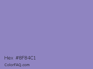 Hex #8f84c1 Color is a light indigo color and the nearest color is Ube #8878c3. Hex code #8f84c1 and RGB value is rgb(143,132,193). In RGB color space, this color is composed of 56% red, 52% green, 76% blue, In CMYK color space, this color is composed of 26% cyan, 32% magenta, 0% yellow , 24% black , In HSL color space, this color has a hue angle of 251° , 33% saturation and 64% lightness.