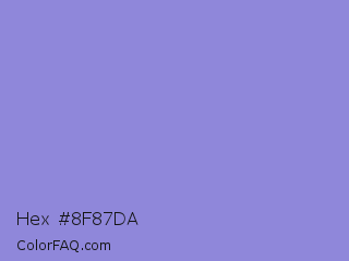 Hex #8f87da Color is a light indigo color and the nearest color is Chetwode Blue #8581d9. Hex code #8f87da and RGB value is rgb(143,135,218). In RGB color space, this color is composed of 56% red, 53% green, 85% blue, In CMYK color space, this color is composed of 34% cyan, 38% magenta, 0% yellow , 15% black , In HSL color space, this color has a hue angle of 246° , 53% saturation and 69% lightness.