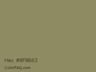 Hex #8f8b63 Color is a normal yellow color and the nearest color is Avocado Pulp #888d65. Hex code #8f8b63 and RGB value is rgb(143,139,99). In RGB color space, this color is composed of 56% red, 55% green, 39% blue, In CMYK color space, this color is composed of 0% cyan, 3% magenta, 31% yellow , 44% black , In HSL color space, this color has a hue angle of 55° , 18% saturation and 47% lightness.
