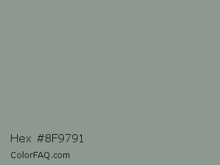 Hex #8f9791 Color is a normal green color and the nearest color is Mantle #8b9c90. Hex code #8f9791 and RGB value is rgb(143,151,145). In RGB color space, this color is composed of 56% red, 59% green, 57% blue, In CMYK color space, this color is composed of 5% cyan, 0% magenta, 4% yellow , 41% black , In HSL color space, this color has a hue angle of 135° , 4% saturation and 58% lightness.