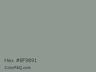 Hex #8f9891 Color is a normal green color and the nearest color is Mantle #8b9c90. Hex code #8f9891 and RGB value is rgb(143,152,145). In RGB color space, this color is composed of 56% red, 60% green, 57% blue, In CMYK color space, this color is composed of 6% cyan, 0% magenta, 5% yellow , 40% black , In HSL color space, this color has a hue angle of 133° , 4% saturation and 58% lightness.