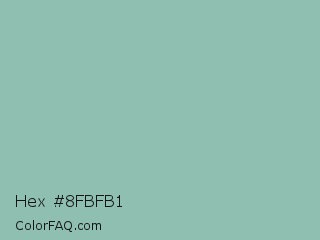 Hex #8fbfb1 Color is a light green color and the nearest color is Summer Green #96bbab. Hex code #8fbfb1 and RGB value is rgb(143,191,177). In RGB color space, this color is composed of 56% red, 75% green, 69% blue, In CMYK color space, this color is composed of 25% cyan, 0% magenta, 7% yellow , 25% black , In HSL color space, this color has a hue angle of 163° , 27% saturation and 65% lightness.