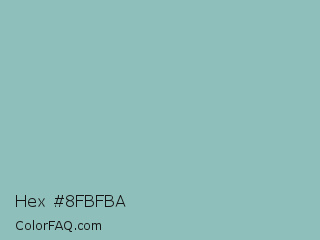 Hex #8fbfba Color is a light cyan color and the nearest color is Shadow Green #9ac2b8. Hex code #8fbfba and RGB value is rgb(143,191,186). In RGB color space, this color is composed of 56% red, 75% green, 73% blue, In CMYK color space, this color is composed of 25% cyan, 0% magenta, 3% yellow , 25% black , In HSL color space, this color has a hue angle of 174° , 27% saturation and 65% lightness.