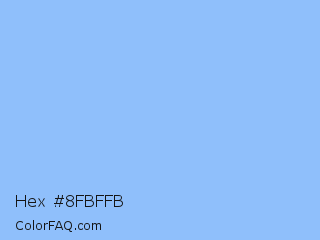 Hex #8fbffb Color is a light blue color and the nearest color is Jordy Blue #8ab9f1. Hex code #8fbffb and RGB value is rgb(143,191,251). In RGB color space, this color is composed of 56% red, 75% green, 98% blue, In CMYK color space, this color is composed of 43% cyan, 24% magenta, 0% yellow , 2% black , In HSL color space, this color has a hue angle of 213° , 93% saturation and 77% lightness.