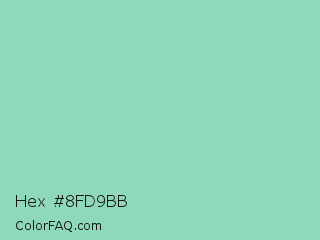 Hex #8fd9bb Color is a light green color and the nearest color is Vista Blue #8fd6b4. Hex code #8fd9bb and RGB value is rgb(143,217,187). In RGB color space, this color is composed of 56% red, 85% green, 73% blue, In CMYK color space, this color is composed of 34% cyan, 0% magenta, 14% yellow , 15% black , In HSL color space, this color has a hue angle of 156° , 49% saturation and 71% lightness.
