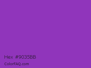 Hex #9035bb Color is a normal purple color and the nearest color is Dark Orchid #9932cc. Hex code #9035bb and RGB value is rgb(144,53,187). In RGB color space, this color is composed of 56% red, 21% green, 73% blue, In CMYK color space, this color is composed of 23% cyan, 72% magenta, 0% yellow , 27% black , In HSL color space, this color has a hue angle of 281° , 56% saturation and 47% lightness.