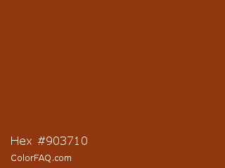Hex #903710 Color is a normal orange color and the nearest color is Kobe #882d17. Hex code #903710 and RGB value is rgb(144,55,16). In RGB color space, this color is composed of 56% red, 22% green, 6% blue, In CMYK color space, this color is composed of 0% cyan, 62% magenta, 89% yellow , 44% black , In HSL color space, this color has a hue angle of 18° , 80% saturation and 31% lightness.