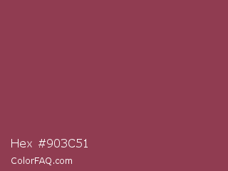 Hex #903c51 Color is a normal red color and the nearest color is Quinacridone Magenta #8e3a59. Hex code #903c51 and RGB value is rgb(144,60,81). In RGB color space, this color is composed of 56% red, 24% green, 32% blue, In CMYK color space, this color is composed of 0% cyan, 58% magenta, 44% yellow , 44% black , In HSL color space, this color has a hue angle of 345° , 41% saturation and 40% lightness.