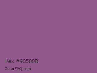 Hex #90588b Color is a normal magenta color and the nearest color is Antique Fuchsia #915c83. Hex code #90588b and RGB value is rgb(144,88,139). In RGB color space, this color is composed of 56% red, 35% green, 55% blue, In CMYK color space, this color is composed of 0% cyan, 39% magenta, 3% yellow , 44% black , In HSL color space, this color has a hue angle of 305° , 24% saturation and 45% lightness.