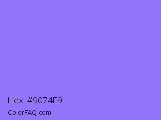Hex #9074f9 Color is a light indigo color and the nearest color is Medium Slate Blue #7b68ee. Hex code #9074f9 and RGB value is rgb(144,116,249). In RGB color space, this color is composed of 56% red, 45% green, 98% blue, In CMYK color space, this color is composed of 42% cyan, 53% magenta, 0% yellow , 2% black , In HSL color space, this color has a hue angle of 253° , 92% saturation and 72% lightness.