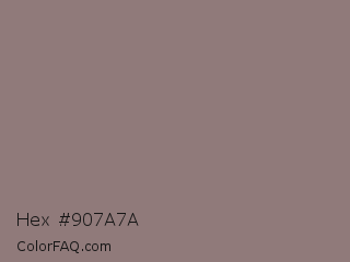 Hex #907a7a Color is a normal red color and the nearest color is Hemp #907874. Hex code #907a7a and RGB value is rgb(144,122,122). In RGB color space, this color is composed of 56% red, 48% green, 48% blue, In CMYK color space, this color is composed of 0% cyan, 15% magenta, 15% yellow , 44% black , In HSL color space, this color has a hue angle of 0° , 9% saturation and 52% lightness.