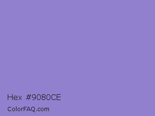 Hex #9080ce Color is a light indigo color and the nearest color is Lilac Bush #9874d3. Hex code #9080ce and RGB value is rgb(144,128,206). In RGB color space, this color is composed of 56% red, 50% green, 81% blue, In CMYK color space, this color is composed of 30% cyan, 38% magenta, 0% yellow , 19% black , In HSL color space, this color has a hue angle of 252° , 44% saturation and 65% lightness.