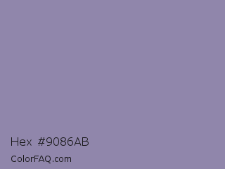 Hex #9086ab Color is a normal indigo color and the nearest color is Cool Grey #8c92ac. Hex code #9086ab and RGB value is rgb(144,134,171). In RGB color space, this color is composed of 56% red, 53% green, 67% blue, In CMYK color space, this color is composed of 16% cyan, 22% magenta, 0% yellow , 33% black , In HSL color space, this color has a hue angle of 256° , 18% saturation and 60% lightness.
