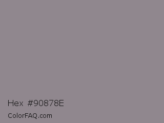 Hex #90878e Color is a normal magenta color and the nearest color is Venus #928590. Hex code #90878e and RGB value is rgb(144,135,142). In RGB color space, this color is composed of 56% red, 53% green, 56% blue, In CMYK color space, this color is composed of 0% cyan, 6% magenta, 1% yellow , 44% black , In HSL color space, this color has a hue angle of 313° , 4% saturation and 55% lightness.