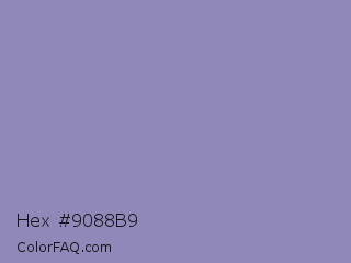 Hex #9088b9 Color is a light indigo color and the nearest color is Lavender Purple #967bb6. Hex code #9088b9 and RGB value is rgb(144,136,185). In RGB color space, this color is composed of 56% red, 53% green, 73% blue, In CMYK color space, this color is composed of 22% cyan, 26% magenta, 0% yellow , 27% black , In HSL color space, this color has a hue angle of 250° , 26% saturation and 63% lightness.