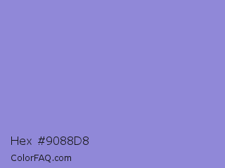 Hex #9088d8 Color is a light indigo color and the nearest color is Chetwode Blue #8581d9. Hex code #9088d8 and RGB value is rgb(144,136,216). In RGB color space, this color is composed of 56% red, 53% green, 85% blue, In CMYK color space, this color is composed of 33% cyan, 37% magenta, 0% yellow , 15% black , In HSL color space, this color has a hue angle of 246° , 51% saturation and 69% lightness.