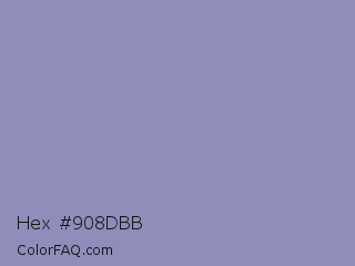 Hex #908dbb Color is a light indigo color and the nearest color is Cool Grey #8c92ac. Hex code #908dbb and RGB value is rgb(144,141,187). In RGB color space, this color is composed of 56% red, 55% green, 73% blue, In CMYK color space, this color is composed of 23% cyan, 25% magenta, 0% yellow , 27% black , In HSL color space, this color has a hue angle of 244° , 25% saturation and 64% lightness.