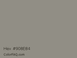 Hex #908e84 Color is a normal yellow color and the nearest color is Stack #8a8f8a. Hex code #908e84 and RGB value is rgb(144,142,132). In RGB color space, this color is composed of 56% red, 56% green, 52% blue, In CMYK color space, this color is composed of 0% cyan, 1% magenta, 8% yellow , 44% black , In HSL color space, this color has a hue angle of 50° , 5% saturation and 54% lightness.