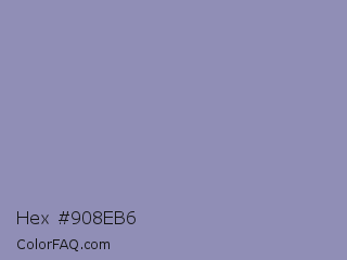 Hex #908eb6 Color is a light indigo color and the nearest color is Cool Grey #8c92ac. Hex code #908eb6 and RGB value is rgb(144,142,182). In RGB color space, this color is composed of 56% red, 56% green, 71% blue, In CMYK color space, this color is composed of 21% cyan, 22% magenta, 0% yellow , 29% black , In HSL color space, this color has a hue angle of 243° , 22% saturation and 64% lightness.