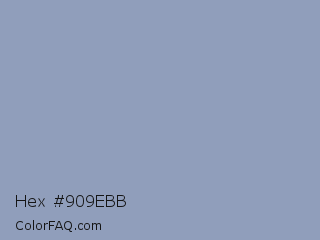 Hex #909ebb Color is a light blue color and the nearest color is Pewter Blue #8ba8b7. Hex code #909ebb and RGB value is rgb(144,158,187). In RGB color space, this color is composed of 56% red, 62% green, 73% blue, In CMYK color space, this color is composed of 23% cyan, 16% magenta, 0% yellow , 27% black , In HSL color space, this color has a hue angle of 220° , 24% saturation and 65% lightness.