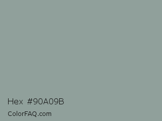 Hex #90a09b Color is a normal green color and the nearest color is Morning Blue #8da399. Hex code #90a09b and RGB value is rgb(144,160,155). In RGB color space, this color is composed of 56% red, 63% green, 61% blue, In CMYK color space, this color is composed of 10% cyan, 0% magenta, 3% yellow , 37% black , In HSL color space, this color has a hue angle of 161° , 8% saturation and 60% lightness.
