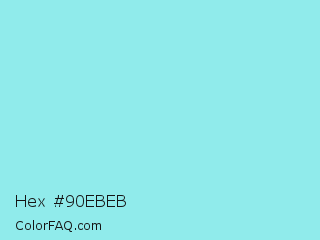 Hex #90ebeb Color is a light cyan color and the nearest color is Riptide #8be6d8. Hex code #90ebeb and RGB value is rgb(144,235,235). In RGB color space, this color is composed of 56% red, 92% green, 92% blue, In CMYK color space, this color is composed of 39% cyan, 0% magenta, 0% yellow , 8% black , In HSL color space, this color has a hue angle of 180° , 69% saturation and 74% lightness.