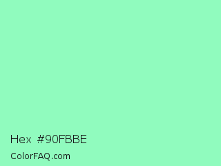 Hex #90fbbe Color is a light green color and the nearest color is Teal Deer #99e6b3. Hex code #90fbbe and RGB value is rgb(144,251,190). In RGB color space, this color is composed of 56% red, 98% green, 75% blue, In CMYK color space, this color is composed of 43% cyan, 0% magenta, 24% yellow , 2% black , In HSL color space, this color has a hue angle of 146° , 93% saturation and 77% lightness.