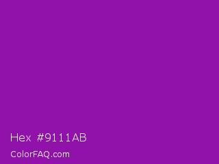 Hex #9111ab Color is a normal purple color and the nearest color is Violet Eggplant #991199. Hex code #9111ab and RGB value is rgb(145,17,171). In RGB color space, this color is composed of 57% red, 7% green, 67% blue, In CMYK color space, this color is composed of 15% cyan, 90% magenta, 0% yellow , 33% black , In HSL color space, this color has a hue angle of 290° , 82% saturation and 37% lightness.