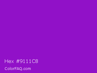Hex #9111c8 Color is a normal purple color and the nearest color is French Violet #8806ce. Hex code #9111c8 and RGB value is rgb(145,17,200). In RGB color space, this color is composed of 57% red, 7% green, 78% blue, In CMYK color space, this color is composed of 28% cyan, 92% magenta, 0% yellow , 22% black , In HSL color space, this color has a hue angle of 282° , 84% saturation and 43% lightness.