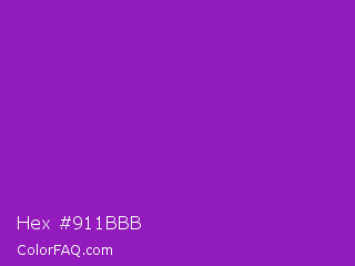 Hex #911bbb Color is a normal purple color and the nearest color is Dark Orchid #9932cc. Hex code #911bbb and RGB value is rgb(145,27,187). In RGB color space, this color is composed of 57% red, 11% green, 73% blue, In CMYK color space, this color is composed of 22% cyan, 86% magenta, 0% yellow , 27% black , In HSL color space, this color has a hue angle of 284° , 75% saturation and 42% lightness.