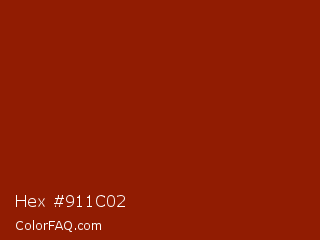 Hex #911c02 Color is a dark red color and the nearest color is Totem Pole #991b07. Hex code #911c02 and RGB value is rgb(145,28,2). In RGB color space, this color is composed of 57% red, 11% green, 1% blue, In CMYK color space, this color is composed of 0% cyan, 81% magenta, 99% yellow , 43% black , In HSL color space, this color has a hue angle of 11° , 97% saturation and 29% lightness.