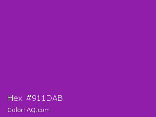 Hex #911dab Color is a normal purple color and the nearest color is Violet Eggplant #991199. Hex code #911dab and RGB value is rgb(145,29,171). In RGB color space, this color is composed of 57% red, 11% green, 67% blue, In CMYK color space, this color is composed of 15% cyan, 83% magenta, 0% yellow , 33% black , In HSL color space, this color has a hue angle of 289° , 71% saturation and 39% lightness.