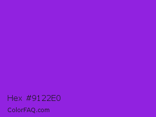 Hex #9122e0 Color is a normal purple color and the nearest color is Blue Violet #8a2be2. Hex code #9122e0 and RGB value is rgb(145,34,224). In RGB color space, this color is composed of 57% red, 13% green, 88% blue, In CMYK color space, this color is composed of 35% cyan, 85% magenta, 0% yellow , 12% black , In HSL color space, this color has a hue angle of 275° , 75% saturation and 51% lightness.