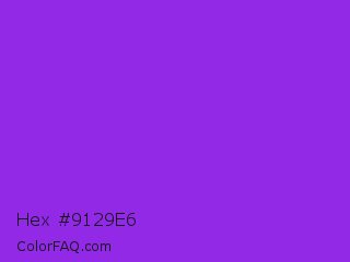 Hex #9129e6 Color is a normal purple color and the nearest color is Blue Violet #8a2be2. Hex code #9129e6 and RGB value is rgb(145,41,230). In RGB color space, this color is composed of 57% red, 16% green, 90% blue, In CMYK color space, this color is composed of 37% cyan, 82% magenta, 0% yellow , 10% black , In HSL color space, this color has a hue angle of 273° , 79% saturation and 53% lightness.