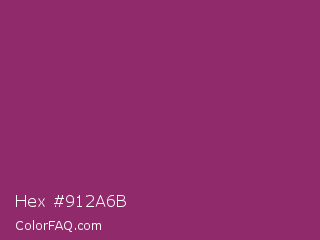Hex #912a6b Color is a normal magenta color and the nearest color is Amaranth Deep Purple #9f2b68. Hex code #912a6b and RGB value is rgb(145,42,107). In RGB color space, this color is composed of 57% red, 16% green, 42% blue, In CMYK color space, this color is composed of 0% cyan, 71% magenta, 26% yellow , 43% black , In HSL color space, this color has a hue angle of 322° , 55% saturation and 37% lightness.