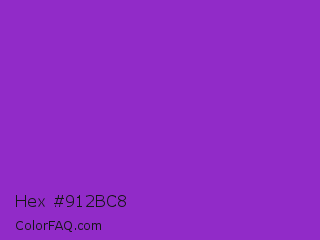 Hex #912bc8 Color is a normal purple color and the nearest color is Dark Orchid #9932cc. Hex code #912bc8 and RGB value is rgb(145,43,200). In RGB color space, this color is composed of 57% red, 17% green, 78% blue, In CMYK color space, this color is composed of 28% cyan, 79% magenta, 0% yellow , 22% black , In HSL color space, this color has a hue angle of 279° , 65% saturation and 48% lightness.
