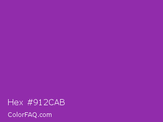 Hex #912cab Color is a normal purple color and the nearest color is Violet Eggplant #991199. Hex code #912cab and RGB value is rgb(145,44,171). In RGB color space, this color is composed of 57% red, 17% green, 67% blue, In CMYK color space, this color is composed of 15% cyan, 74% magenta, 0% yellow , 33% black , In HSL color space, this color has a hue angle of 288° , 59% saturation and 42% lightness.
