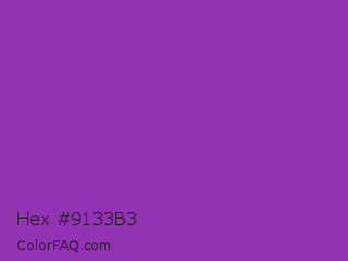 Hex #9133b3 Color is a normal purple color and the nearest color is Dark Orchid #9932cc. Hex code #9133b3 and RGB value is rgb(145,51,179). In RGB color space, this color is composed of 57% red, 20% green, 70% blue, In CMYK color space, this color is composed of 19% cyan, 72% magenta, 0% yellow , 30% black , In HSL color space, this color has a hue angle of 284° , 56% saturation and 45% lightness.