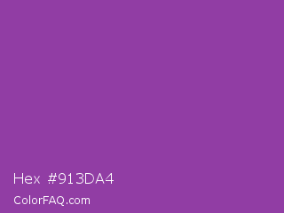 Hex #913da4 Color is a normal purple color and the nearest color is Purpureus #9a4eae. Hex code #913da4 and RGB value is rgb(145,61,164). In RGB color space, this color is composed of 57% red, 24% green, 64% blue, In CMYK color space, this color is composed of 12% cyan, 63% magenta, 0% yellow , 36% black , In HSL color space, this color has a hue angle of 289° , 46% saturation and 44% lightness.