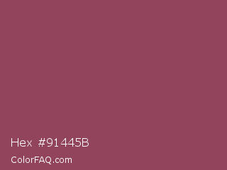 Hex #91445b Color is a normal rose color and the nearest color is Quinacridone Magenta #8e3a59. Hex code #91445b and RGB value is rgb(145,68,91). In RGB color space, this color is composed of 57% red, 27% green, 36% blue, In CMYK color space, this color is composed of 0% cyan, 53% magenta, 37% yellow , 43% black , In HSL color space, this color has a hue angle of 342° , 36% saturation and 42% lightness.