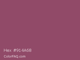 Hex #914a68 Color is a normal rose color and the nearest color is Twilight Lavender #8a496b. Hex code #914a68 and RGB value is rgb(145,74,104). In RGB color space, this color is composed of 57% red, 29% green, 41% blue, In CMYK color space, this color is composed of 0% cyan, 49% magenta, 28% yellow , 43% black , In HSL color space, this color has a hue angle of 335° , 32% saturation and 43% lightness.