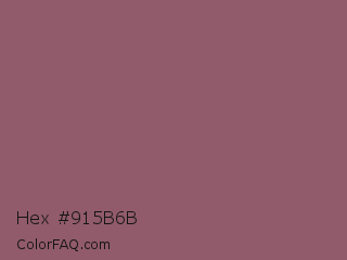 Hex #915b6b Color is a normal rose color and the nearest color is Mauve Taupe #915f6d. Hex code #915b6b and RGB value is rgb(145,91,107). In RGB color space, this color is composed of 57% red, 36% green, 42% blue, In CMYK color space, this color is composed of 0% cyan, 37% magenta, 26% yellow , 43% black , In HSL color space, this color has a hue angle of 342° , 23% saturation and 46% lightness.