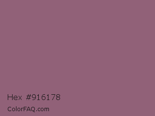 Hex #916178 Color is a normal rose color and the nearest color is Mauve Taupe #915f6d. Hex code #916178 and RGB value is rgb(145,97,120). In RGB color space, this color is composed of 57% red, 38% green, 47% blue, In CMYK color space, this color is composed of 0% cyan, 33% magenta, 17% yellow , 43% black , In HSL color space, this color has a hue angle of 331° , 20% saturation and 47% lightness.