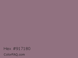 Hex #917180 Color is a normal rose color and the nearest color is Bazaar #98777b. Hex code #917180 and RGB value is rgb(145,113,128). In RGB color space, this color is composed of 57% red, 44% green, 50% blue, In CMYK color space, this color is composed of 0% cyan, 22% magenta, 12% yellow , 43% black , In HSL color space, this color has a hue angle of 332° , 13% saturation and 51% lightness.