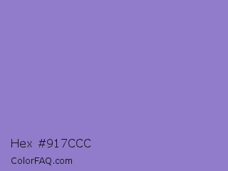 Hex #917ccc Color is a light indigo color and the nearest color is Lilac Bush #9874d3. Hex code #917ccc and RGB value is rgb(145,124,204). In RGB color space, this color is composed of 57% red, 49% green, 80% blue, In CMYK color space, this color is composed of 29% cyan, 39% magenta, 0% yellow , 20% black , In HSL color space, this color has a hue angle of 256° , 44% saturation and 64% lightness.