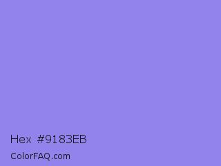 Hex #9183eb Color is a light indigo color and the nearest color is Chetwode Blue #8581d9. Hex code #9183eb and RGB value is rgb(145,131,235). In RGB color space, this color is composed of 57% red, 51% green, 92% blue, In CMYK color space, this color is composed of 38% cyan, 44% magenta, 0% yellow , 8% black , In HSL color space, this color has a hue angle of 248° , 72% saturation and 72% lightness.