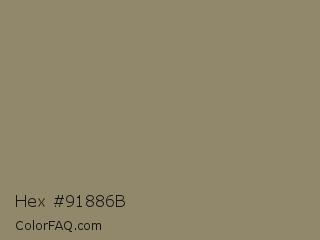 Hex #91886b Color is a normal yellow color and the nearest color is Arrowtown #948771. Hex code #91886b and RGB value is rgb(145,136,107). In RGB color space, this color is composed of 57% red, 53% green, 42% blue, In CMYK color space, this color is composed of 0% cyan, 6% magenta, 26% yellow , 43% black , In HSL color space, this color has a hue angle of 46° , 15% saturation and 49% lightness.