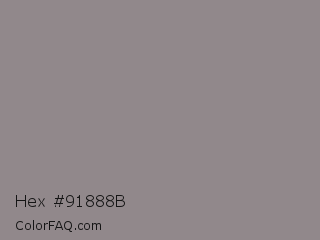 Hex #91888b Color is a normal rose color and the nearest color is Venus #928590. Hex code #91888b and RGB value is rgb(145,136,139). In RGB color space, this color is composed of 57% red, 53% green, 55% blue, In CMYK color space, this color is composed of 0% cyan, 6% magenta, 4% yellow , 43% black , In HSL color space, this color has a hue angle of 340° , 4% saturation and 55% lightness.